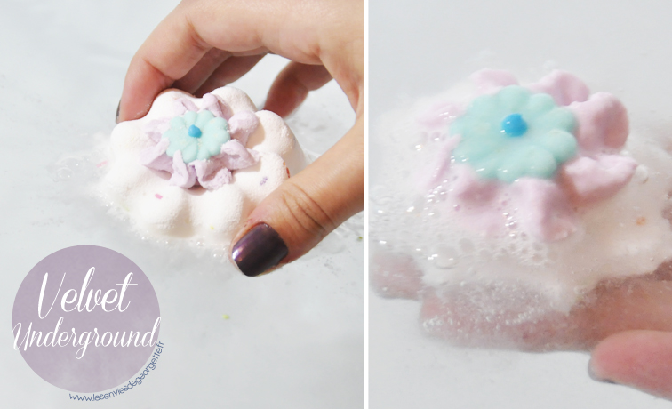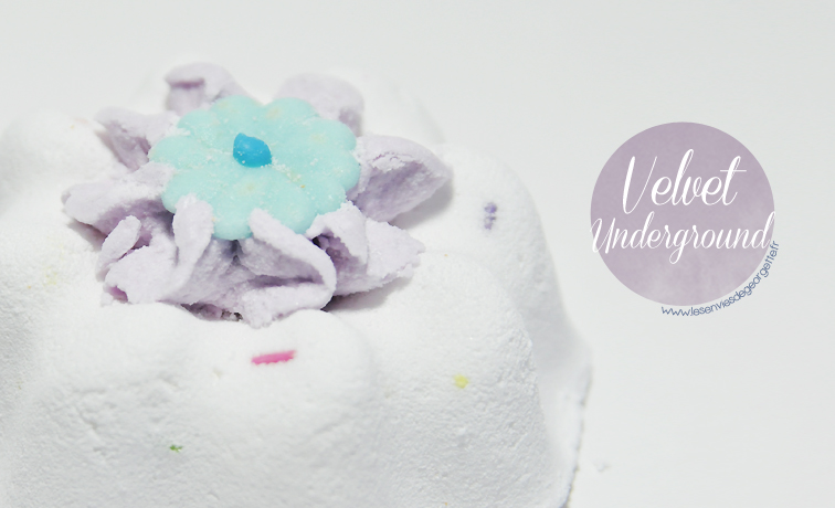 Il y a quelques temps, je vous parlai du Paradis du Bain, notamment de la boule de bain In the Mood que j’avais adoré ! Aujourd’hui, je vous présente Velvet Underground, de la marque Bomb Cosmetic, ce n’est pas une boule mais une sorte de forme plate avec une espèce de fleur au dessus.