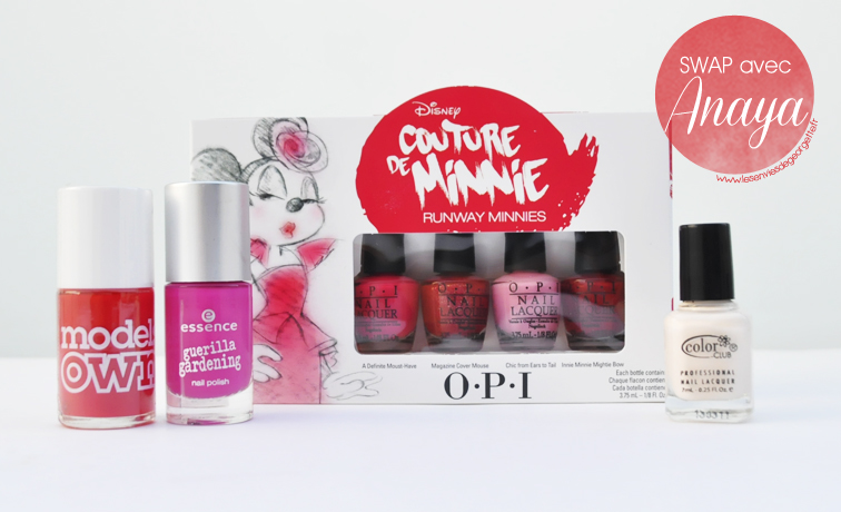 – Le kit OPI Couture de Minnie composé de 4 supers vernis dans les tons rose / rouge, j’adooooooore ! 😀 (en plus il y avait un petit post it pour me dire que c’était pour mon anniversaire dans quelques jours :p)
