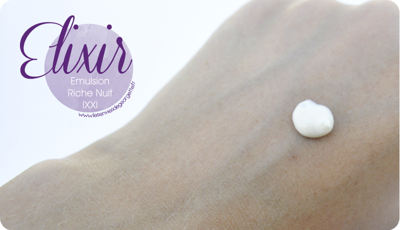 Cette émulsion est très onctueuse, elle s’applique facilement sur une peau nettoyée, avant d’aller dormir. Elle est très riche, mais pénètre vraiment rapidement. On sent que la peau « adore » boire cette crème !