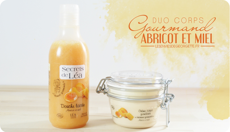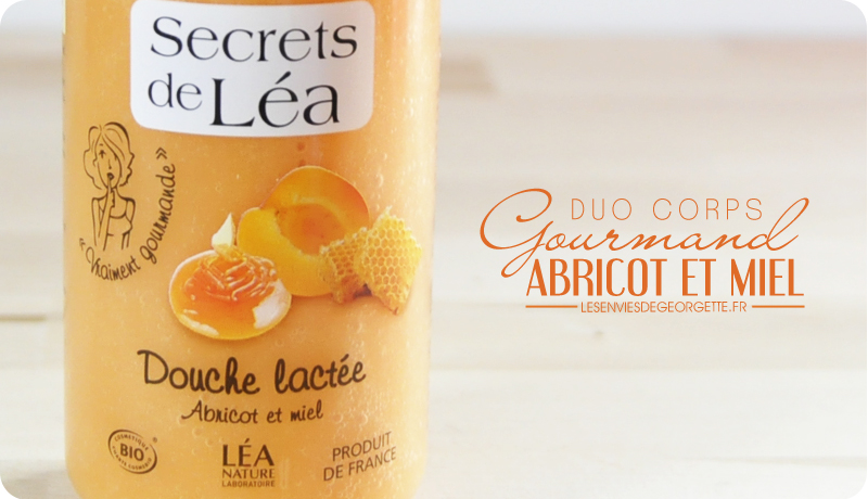 Secrets de Léa propose une gamme de soins pour le corps aux odeurs gourmandes : framboise et violette, pomme et pépins de raisins et comme vous pouvez le voir, abricot et miel. Chaque odeur est déclinée en 2 soins : une douche lactée et un autre produit nourrissant ou exfoliant.