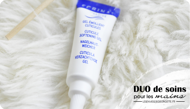 En premier lieu, je m’attaque à mes cuticules avec le gel émollient de Ecrinal. J’applique un peu de gel sur le contour de mes ongles et je laisse agir quelques minutes. Cela va ramollir les peaux autour des ongles.