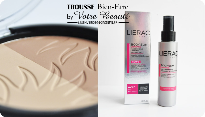 – Le Body-Slim Drainage de Lierac : une huile biphasique drainante qui lutte contre la rétention d’eau et la cellulite. Elle serait tout aussi efficace que la caféine, et bien je testerai ça !