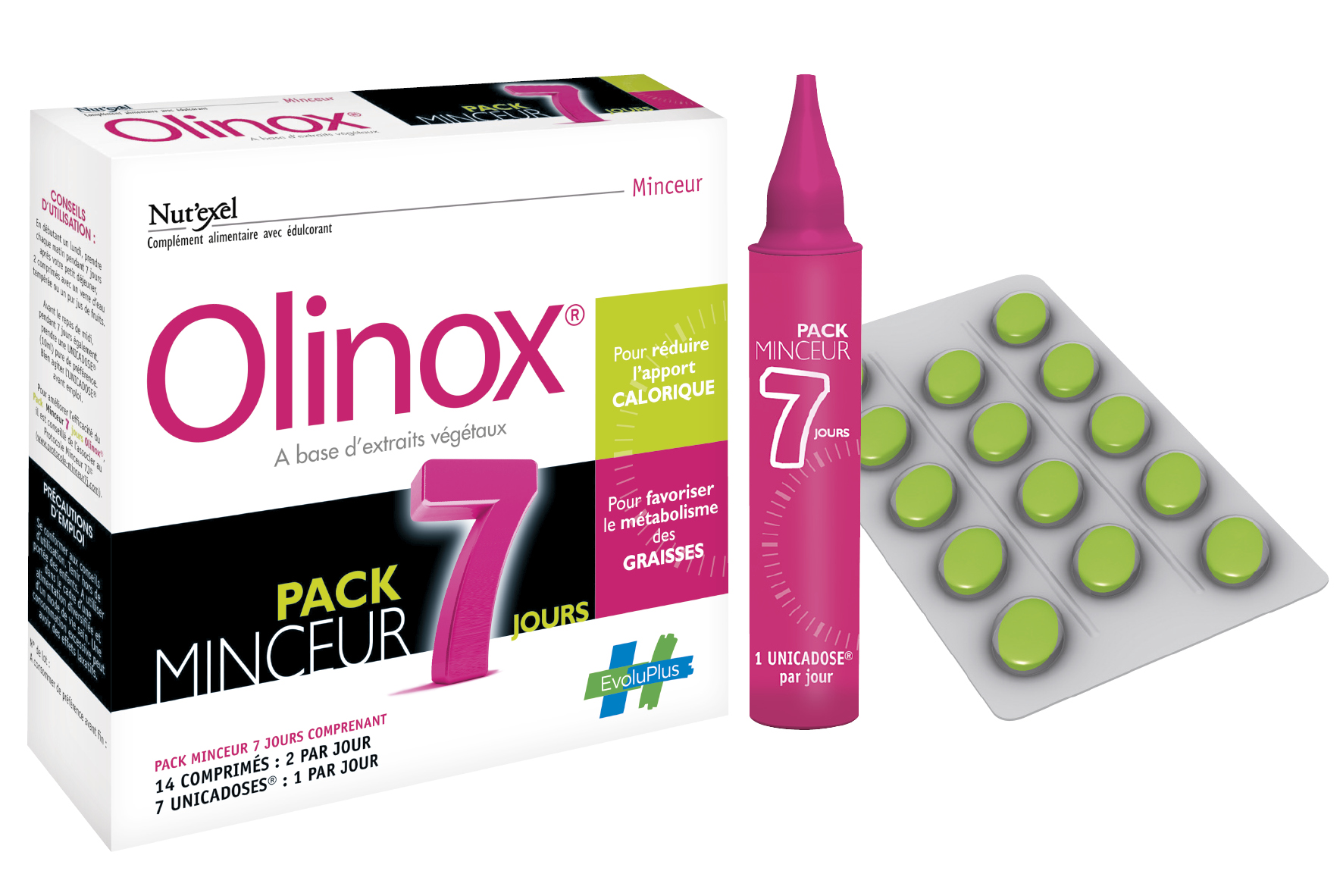 Le pack minceur Olinox créé par Nut’Exel et vendu par Evolupharm est un programme sur 7 jours qui peut vous faire perdre jusqu’à 3,3kg, sans faire forcément de régime à côté… vous pouvez donc continuer de manger votre pizza ou votre mac-do hebdomadaire avec votre meilleure amie !