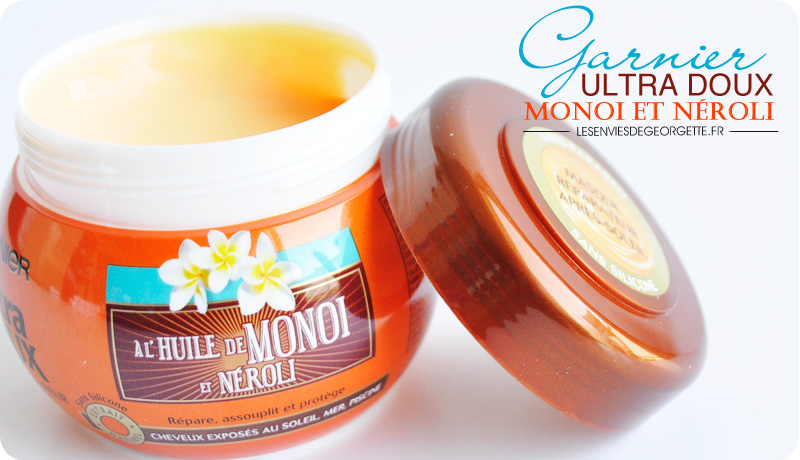 Selon moi, un été sans monoï n’est pas un été réussi ! J’adore cette odeur et dés le mois de mai je ressors tous mes produits à base de monoï juste pour faire venir l’été encore plus vite ! Je trouve cette odeur enivrante, et complètement déstressante, ça évoque vraiment les ballades sur la plage, les vacances quoi ! Cette année, une nouvelle gamme s’est ajoutée à ma collection : le shampooing et le masque à l’huile de monoï et néroli de Garnier Ultra Doux.