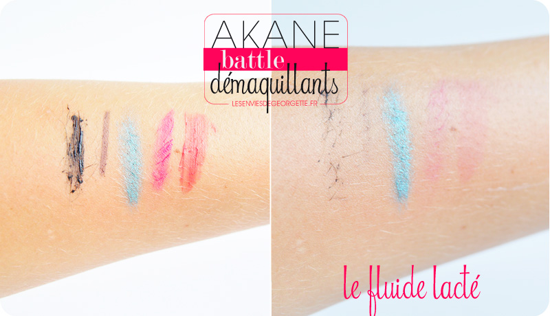 On voit très bien que le fluide démaquille très bien presque tous les éléments sauf le color shock qui n’ai presque pas parti.
