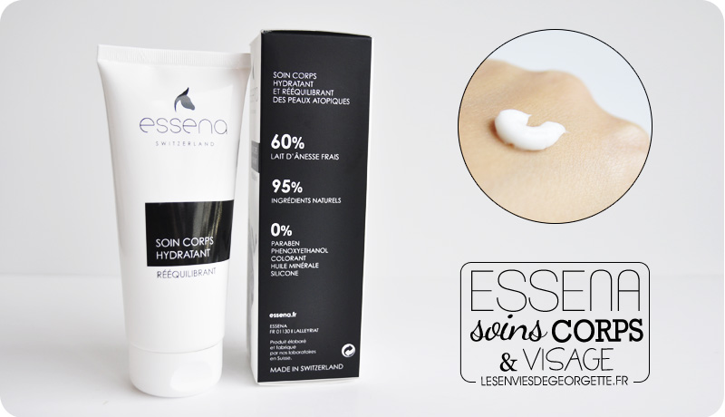 Le soin 24h d’Essena est donc une crème de jour qui contient 60% de lait d’ânesse frais, mais aussi de la gelée royale, du bleuet… des ingrédients qui conviennent parfaitement à une peau normale à mixte puisqu’ils vont avoir une action anti-inflammatoire et cicatrisante.