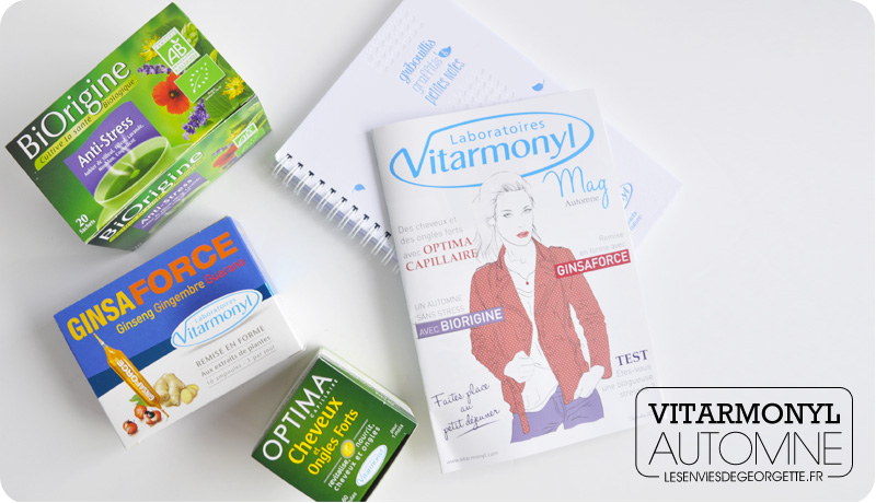 L’automne est là avec toute sa clique de petits maux… et pour combattre tout ça, j’ai reçu la boite magique Vitarmonyl ! Elle tombait vraiment à pic puisqu’elle contient EXACTEMENT tout ce dont j’ai besoin en ce moment (et je ne dois pas être la seule…!).