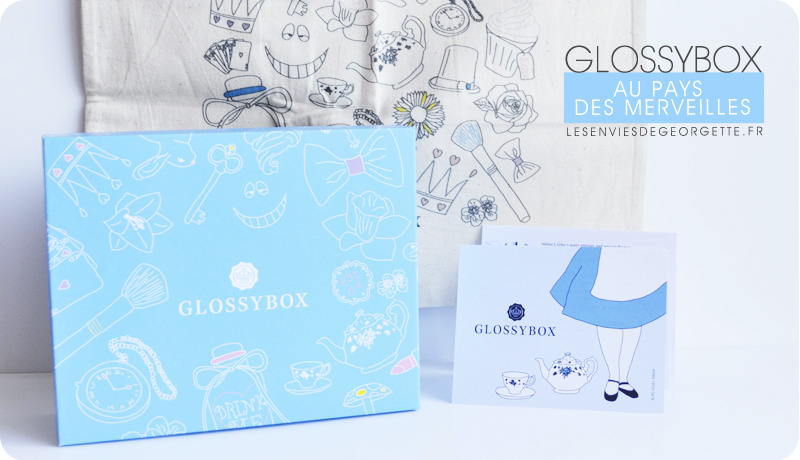 Cette semaine, j’ai reçu la magnifique Glossybox au pays des Merveilles… et oui, ce mois-ci, Glossybox nous emmène dans l’univers d’Alice avec une boite devenue bleue, joliment illustrée par des petits clins d’œil de l’univers d’Alice. Et en prime, un jolie totebag Alice au Pays des Merveilles !