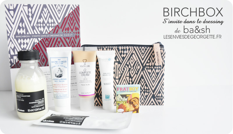 Ce mois-ci, Birchbox a customisé sa box aux couleurs de la marque ba&sh. On pouvait ainsi découvrir une très jolie boite aux formes géométriques dans laquelle il y avait 5 produits et un petit goodies ba&sh.