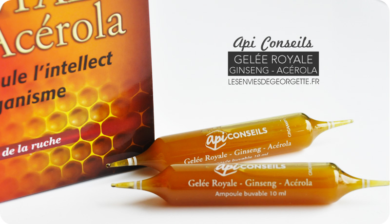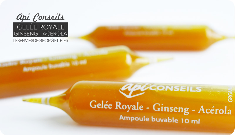 J’avoue que je ne connaissais pas du tout ce laboratoire français, et j’ai découvert qu’ils développent, fabriquent et distribuent des compléments alimentaires, mais aussi des infusions et des produits de beauté et bien-être. Ces ampoules font parties de la gamme APICONSEILS qui utilisent des ingrédients issus des ruches tels que la gelée royale, la propolis, le pollen et le miel.