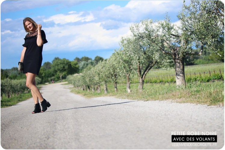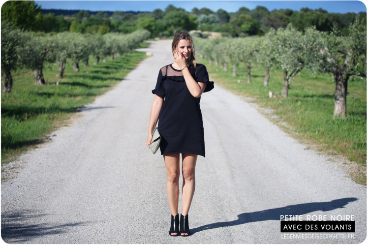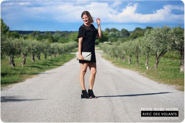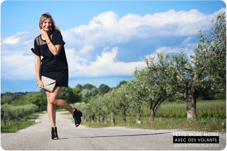 Je la trouve trop mimi avec ses petits volants et son effet de transparence avec l’empiétement en tulle… je la porte ici avec mes chaussures à talons préférées, des Stradivarius ouvertes aux talons et aux orteils. Avec le gros talons carrés, elles sont pratiques pour marcher et je les trouve très sympa, avec un petit côté rock élégant !
