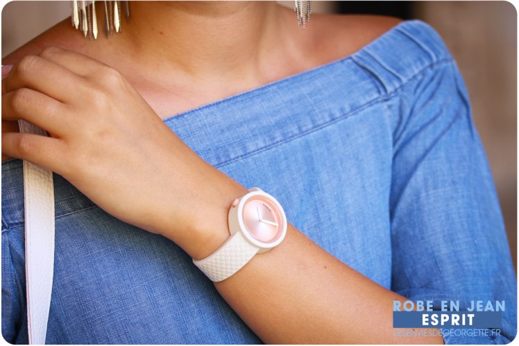 J’ai donc craqué il y a 2 semaines sur une jolie robe effet jean de la marque Esprit avec les épaules dénudées tout en tissus effet jean très fluide et léger.