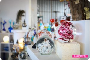 25 ans à venir en Ardèche et je n’étais jamais allée chez Sylvain, pourtant il a ouvert en 2011 et propose une très jolie boutique avec ses créations (vases, animaux en verre, boules de Noël, objets déco…) qui donne sur son atelier ouvert où tout le monde peut le regarder travailler.