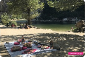 Après 2h de descente avec des pauses explicatives nous nous sommes arrêtées juste avant le Pont d’Arc pour rejoindre Marina, de Pont-d’Arc Ardèche, pour un pique-nique local.