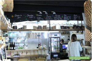 Anaïs était sur que ça allait me plaire et elle avait raison ! Il est vrai que de dehors, ça ne ressort pas vraiment comme étant un lieu où l’on peut déjeuner, mais plus une épicerie comme il en existe beaucoup d’autres. Une fois la porte ouverte, on comprend que le concept va beaucoup plus loin.